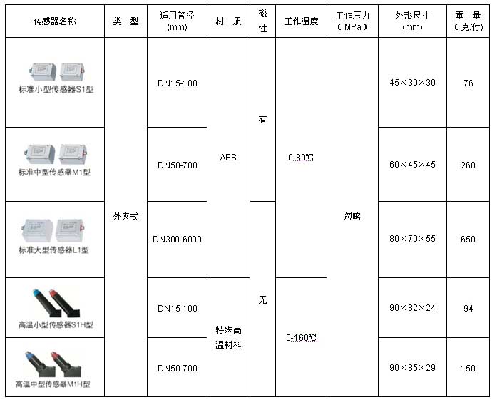 可選配傳感器 | S1 | 標準S1型傳感器(外縛式) | |||||||